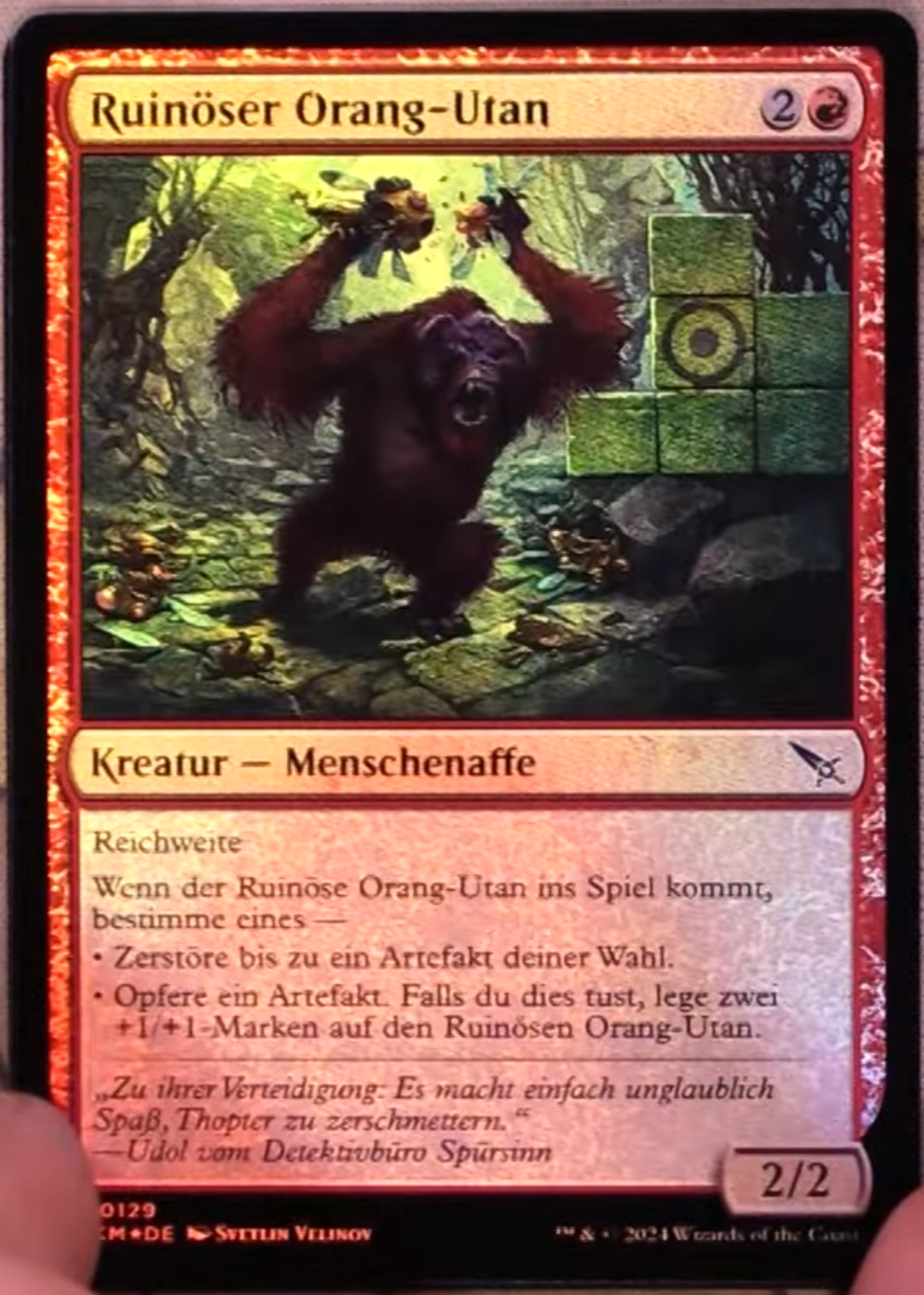 This puzzle involves certain foil cards in the set, where there are things hidden on the foil layer of certain cards that are invisible in the normal art. These variants were initially discovered on 02-02 by u/seanlee1205 on reddit. We were able to collectively gather images of all the foil variants via box opening videos, and partially solved the puzzle later that day. The remainder of the puzzle relies on information provided by the Mystery File, namely, the instructions on what to do with the grid and the provided decoder